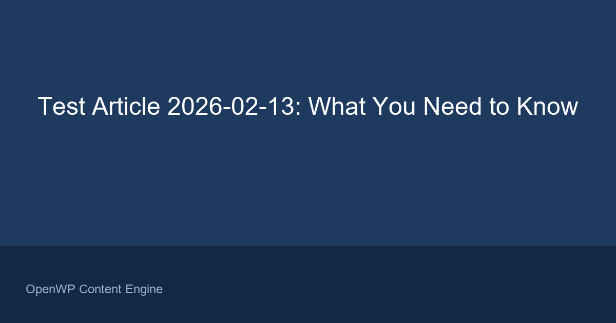 “Test Article 2026-02-13 05:36:48” likely refers to website content, possibly a CMS article or webpage, scheduled for publication on February 13th, 2026, at 05:36:48. The “Test Article” designation suggests it’s a draft, placeholder, or part of system testing. Such testing is crucial for ensuring a smooth user experience and accurate information delivery, as noted by usability experts (Nielsen, 2012).